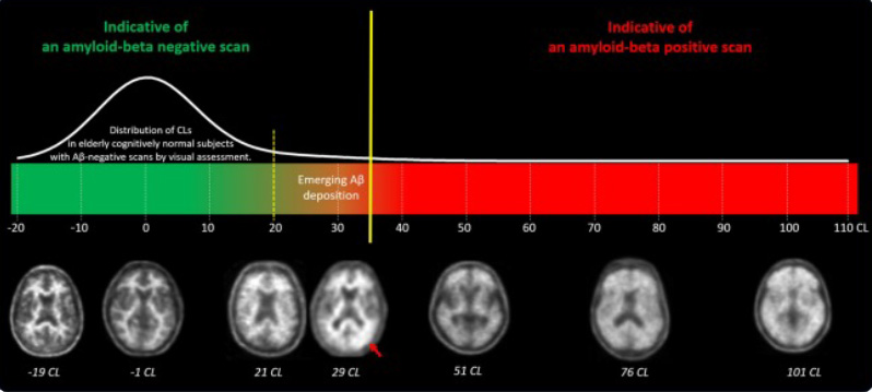 <20 CL: Common in cognitively normal elderly patients, typically corresponding to negative amyloid PET scans.